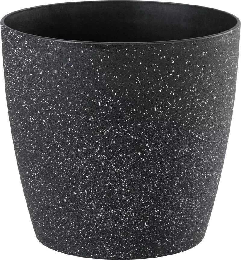 Élénkítsd fel otthonod vagy teraszod hangulatát a Strend Pro Garden Stone kőhatású virágcseréppel! A fekete, fehér szemcsékkel pöttyözött felület természetes lávakőre emlékeztet, mégis pehelykönnyű, mindössze 0,82 kg. A 28 cm-es átmérő és 26 cm-es magasság ideális terepet ad bokros szobanövényeknek, aromás fűszereknek vagy akár fiatal citrusfácskának. Masszív, fagy- és UV-álló műanyagból készült, így egész évben bátran kint hagyhatod, de a nappaliban is elegáns dekoráció. A beépített önöntöző betét egyenletes vízellátást kínál, hogy a növényed mindig üde maradjon.