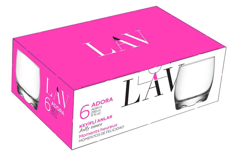 Élvezd kedvenc whisky-d minden aromáját a LAV Adora pohárban! A 290 ml-es, kristálytiszta üveg elegánsan mutat az asztalon, miközben a 72 × 88 mm-es formátum kellően kompakt a kényelmes fogáshoz, és elég tágas, hogy a jégkockák szabadon úszkáljanak benne. A vastag, különlegesen kialakított alj súlyt és stabilitást ad, így nem kell tartanod a felborulástól. A hat darabos készlet ideális baráti italozáshoz, koktélesthez vagy a mindennapi vízfogyasztáshoz.