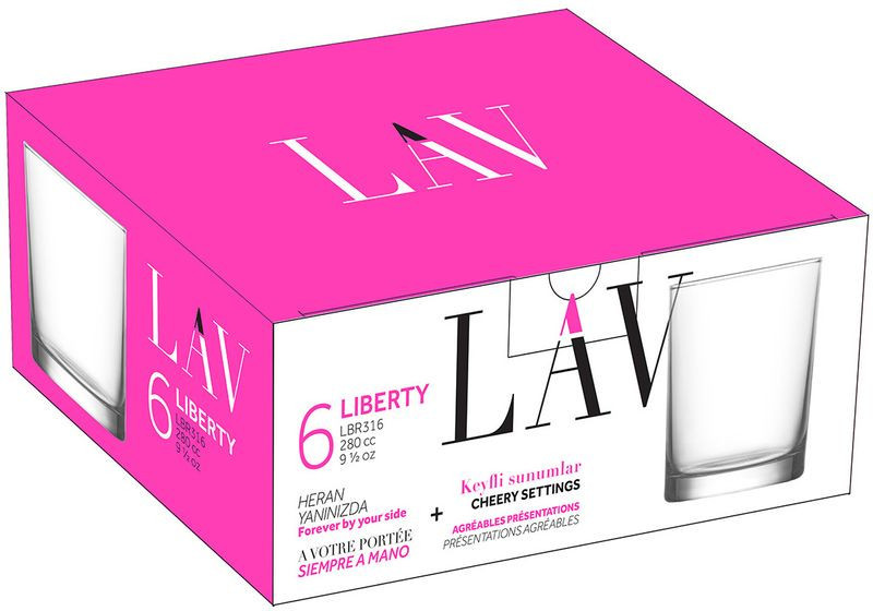 A LAV Liberty whiskyspohár-szett elegáns egyszerűségével emeli az otthoni italfogyasztás színvonalát. A hat darabos készlet mindegyik darabja kristálytiszta üvegből készült, amely 74 mm széles és 88 mm magas, így 280 ml ital kényelmesen elfér benne. A vastag alj stabilitást nyújt, a letisztult formavilág pedig kiemeli a whisky aranyszínét. A poharak mosogatógépben is moshatók, így a kényelemről sem kell lemondanod.