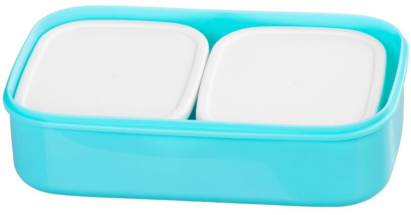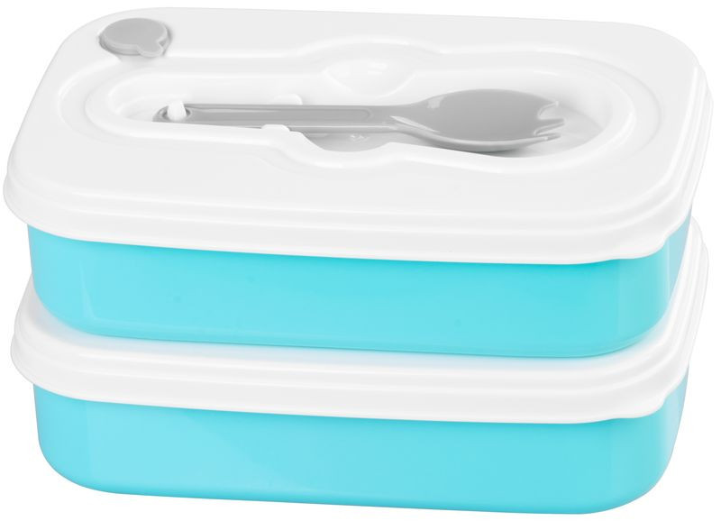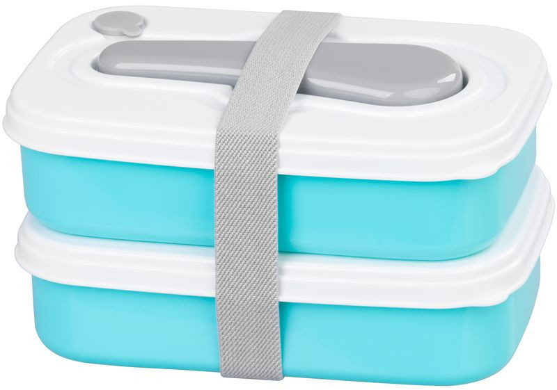Vidd magaddal kedvenc fogásaidat a MagicHome szögletes, 2 részes ételhordóval! A két, egyenként 1000 ml-es műanyag tál egyszerűen egymásra illeszthető, fedelüket stabil, szürke textilpánt rögzíti, így a leves, saláta vagy főétel nem borul ki. A türkizkék tálakhoz fehér, gőzkieresztő szeleppel ellátott fedél, valamint egy praktikus villa/kanál kombinált evőeszköz jár. Kompakt mérete (20,8 × 13,5 × 12,4 cm) és mindössze 430 g-os tömege miatt bárhová magaddal viheted.