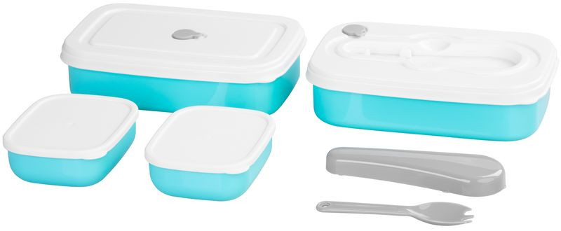 • Szín: türkiz tálak, fehér fedél, szürke pánt és evőeszköz