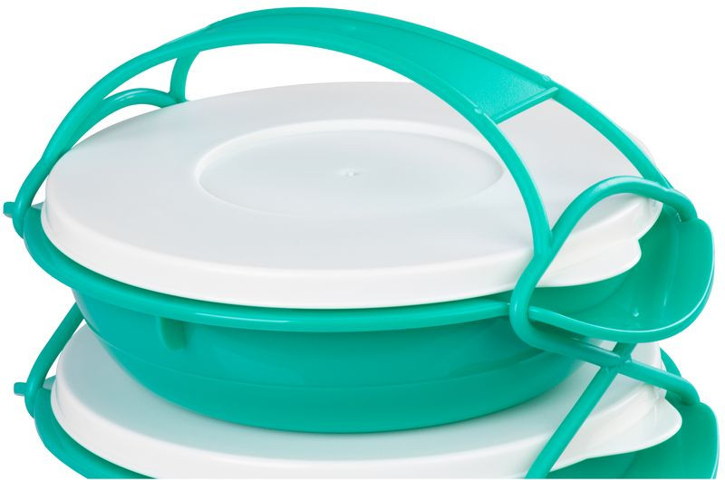 Vidd magaddal kedvenc fogásaidat stílusosan a MagicHome kerek, 4 részes ételhordóval! A négy, egyenként 1000 ml-es tál megbízhatóan gondoskodik arról, hogy leves, főétel és desszert is külön rekeszbe kerüljön. A könnyű, mindössze 0,65 kg-os szerkezetet egy erős műanyag kapocs fogja össze, így a tálak stabilan egymásra rögzíthetők. A tartós, élénk türkiz műanyag strapabíró társ a rohanós hétköznapokban, legyen szó munkáról, piknikről vagy iskoláról.