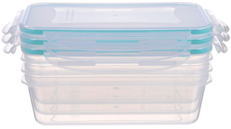 Tárolódoboz szett, MagicHome YH377, átlátszó, 3 db, 1350 ml, 155 x 215 x 75 mm, téglalap alakú, klipszes, műanyag, mikrózható, mosogatógépben mosható