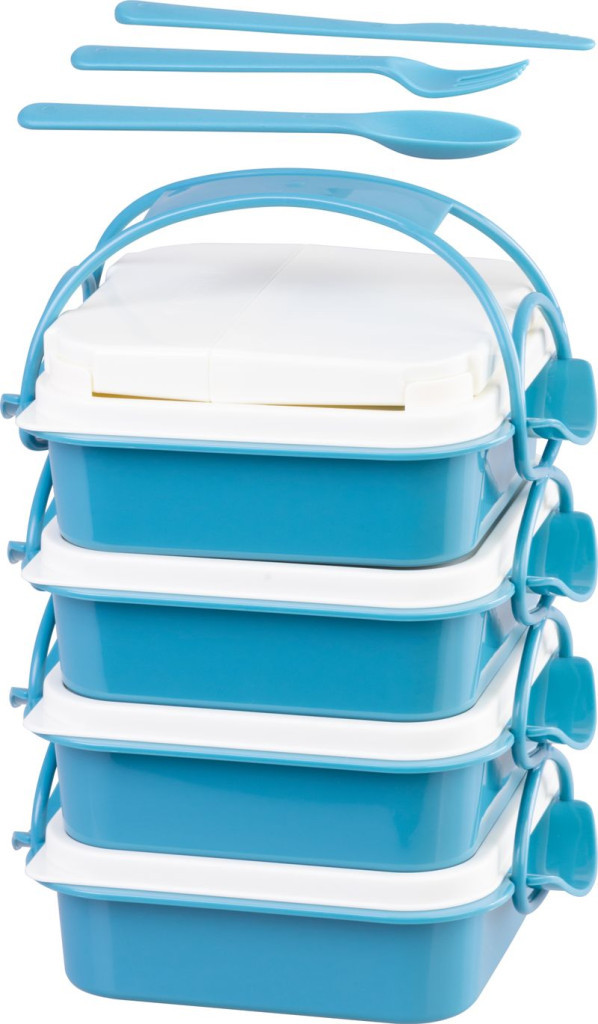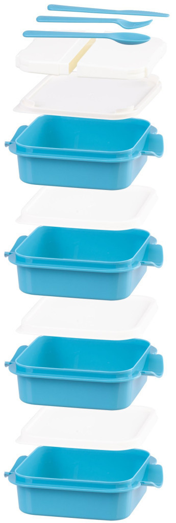 Az Ételhordó MagicHome szögletes, 4 részes uzsonnásdobozával egyszerre négyféle fogást vihetsz magaddal. A 800 ml-es kék tálak lég- és cseppmentesen záró, fehér fedőt kaptak; a stabil műanyag csat egyetlen egységgé rögzíti őket, a lehajtható hordfül pedig kényelmessé teszi a szállítást. A beépített kanál-villa-kés készletnek köszönhetően nem kell külön evőeszközöket keresned. BPA-mentes anyaga mosogatógép-, hűtő- és fagyasztóálló – így minden nap frissen tarthatod és könnyen tisztíthatod.