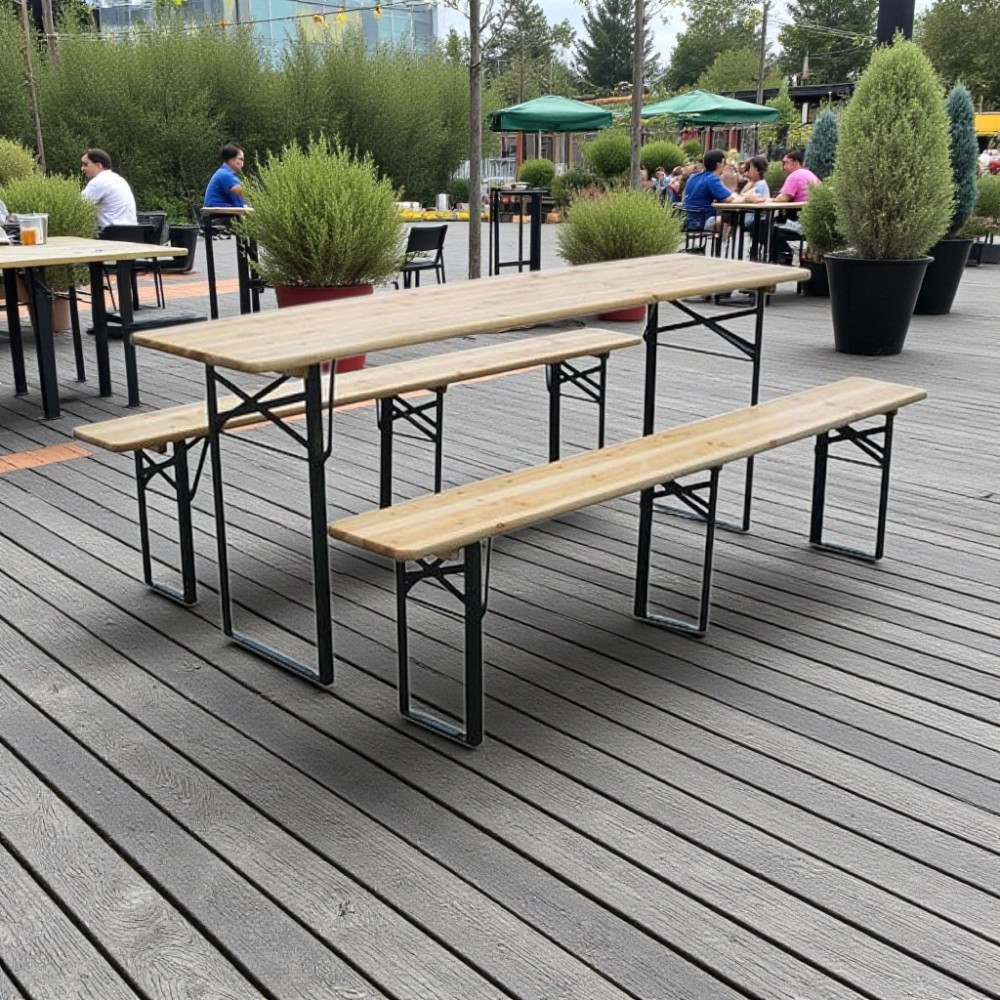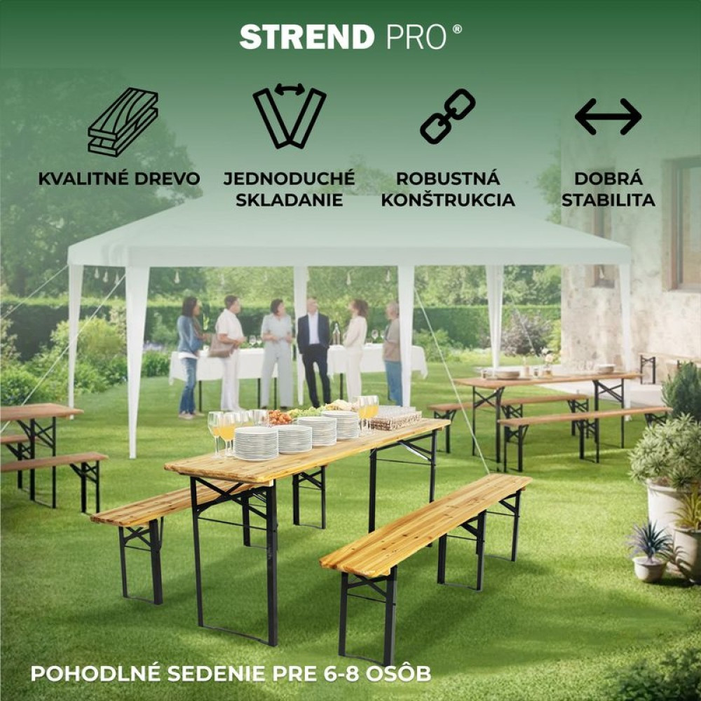 Élvezd a közös pillanatokat a DORTMUND Standard3 sörpad szettel, amely tökéletes társ bármilyen kerti partihoz, rendezvényhez vagy családi összejövetelhez. A 175 cm hosszú asztal és a két hozzá tartozó pad kényelmes helyet biztosít mindenki számára. Könnyen összecsukható kialakítása helytakarékos tárolást és egyszerű szállítást tesz lehetővé, így bárhol és bármikor gyorsan felállítható.