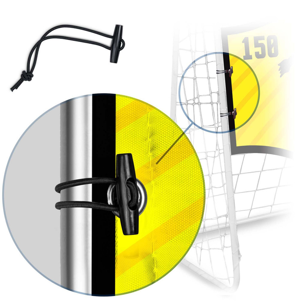 Ez a speciális találati panel egy szempillantás alatt a kapudra rögzíthető, így a gyakorlást ott és akkor kezdheted, amikor csak kedved tartja. A különböző pontértékű nyílások ösztönző játékot teremtenek: minden lövésnél azonnal látod, mennyit ért a találatod, így könnyen mérheted a fejlődésed. A strapabíró anyagnak köszönhetően kültéren és beltéren egyaránt használhatod, a vízálló nyomat pedig esőben sem fakul.