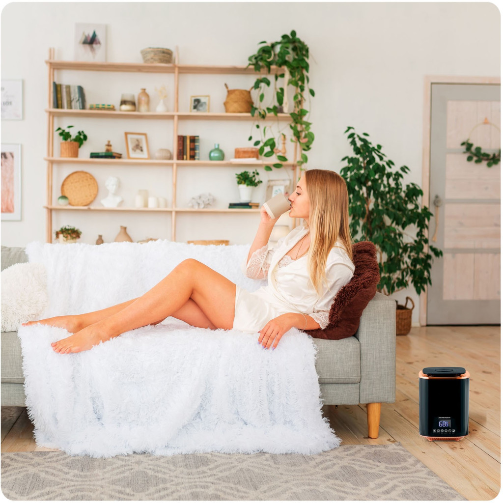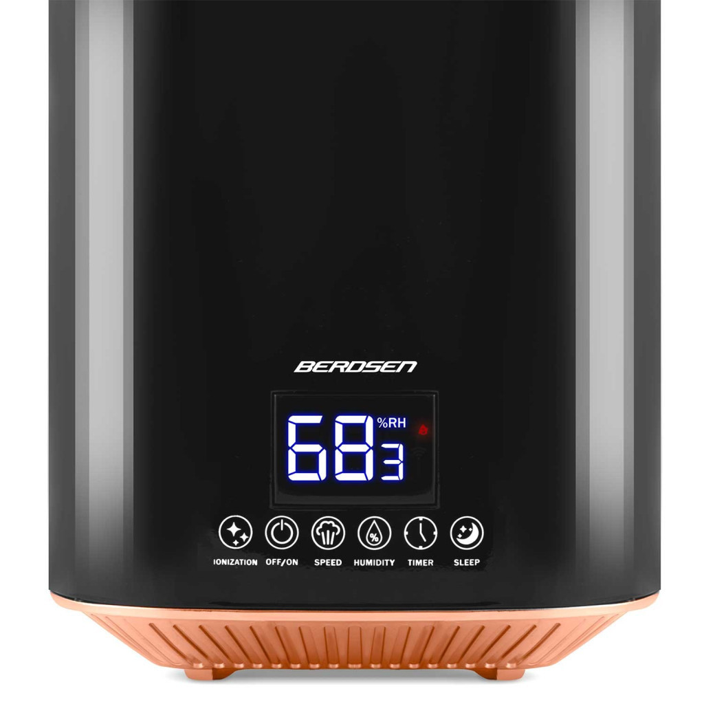 A Berdsen BD-502 ultrahangos párásító stílusos fekete-réz házával elegáns kiegészítője otthonodnak, miközben percenkénti 250 ml teljesítménnyel hatékonyan emeli a levegő páratartalmát. A 2,6 literes tartály akár 9 órányi megszakítás nélküli működést tesz lehetővé, a beépített higrosztát pedig 45–90% között tartja a kívánt értéket. LED érintőpanelje és a mellékelt távirányító révén minden funkció – párásítás, ionizálás, aromaterápia, időzítés – egyetlen érintéssel aktiválható.