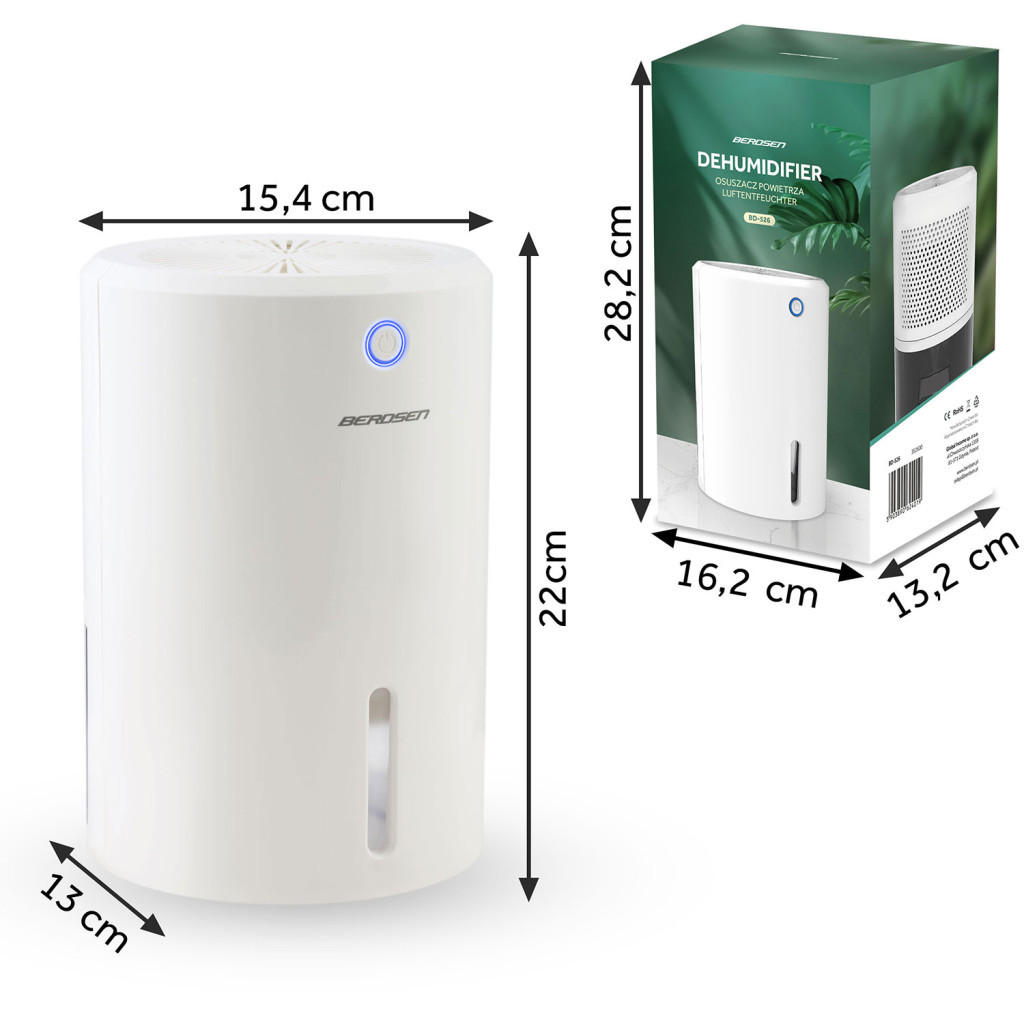 A Berdsen BD-526 páramentesítő diszkréten, mégis hatékonyan szünteti meg a túlzott nedvességet otthonodban. A mindössze 22,5 W teljesítményű, Peltier-technológiával működő készülék naponta akár 280 ml vizet von ki a levegőből, így megelőzi a penész és a dohos szag kialakulását. 800 ml-es, kivehető tartálya, valamint a 34 dB-nél is halkabb működése ideálissá teszi hálószobába, fürdőbe vagy gardróbba. Elegáns LED-es fénygyűrűje modern megjelenést kölcsönöz, miközben azonnal jelzi a működési állapotot.