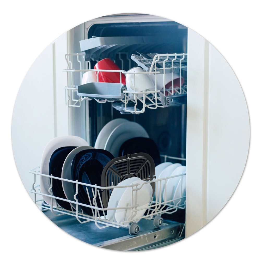 • Helyezd a rácsot vagy a tálcát a forrólevegős sütő kosarába