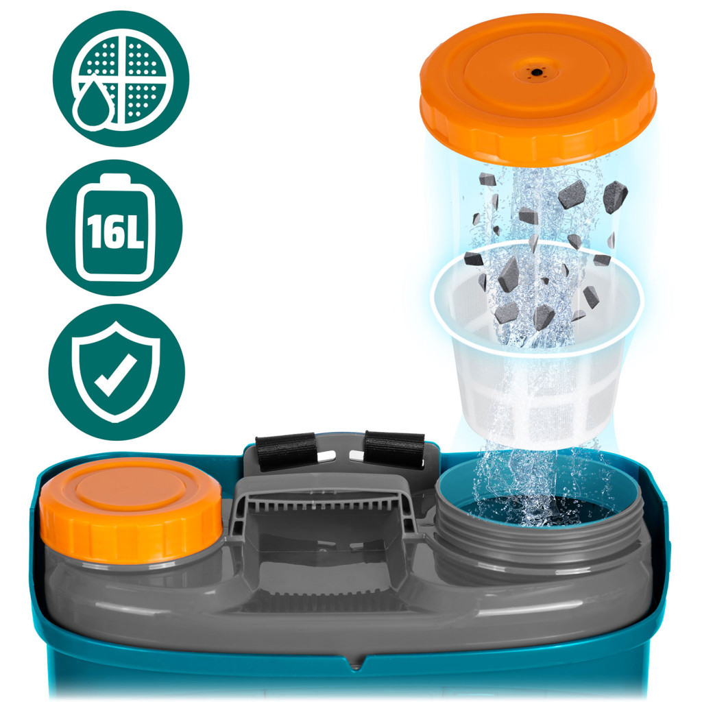 • 16 literes tartály: kevesebb újratöltés, nagyobb hatékonyság