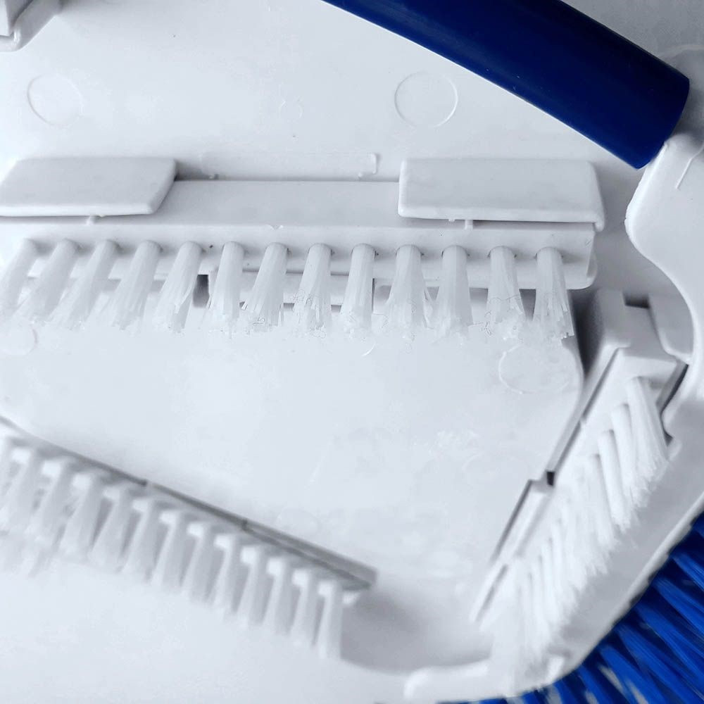 • Oldalsörtés kialakítás: A kefe mindkét oldalán található sörték lehetővé teszik a nehezen hozzáférhető sarkok, élek és ívek hatékony tisztítását is, ahol a szennyeződések gyakran megtapadnak.