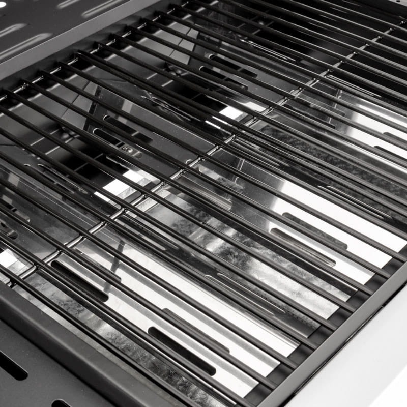 Ez a gázgrill számos funkcionális megoldással van felszerelve, ami rendkívül praktikussá és hatékonnyá teszi. A szerkezetben használt hőmérővel ellátott burkolatnak köszönhetően a sütési folyamat hatékonyabbá válik. Az optimális hőmérséklet fenntartása a grillen garantálja a tökéletesen sült és lédús ételeket. A gyorsan felmelegedő öntöttvas rács hatékonyan vezeti a hőmérsékletet, ami kényelmes sütést és kiváló minőségű ételeket jelent. Az ajtókkal ellátott tároló lehetővé teszi a tartozékok rendszerezését és a gázpalack esztétikus elrejtését. A készlet tartalmaz egy szűkítőt is, amely a gázpalack problémamentes csatlakoztatásához szükséges. A porszórt acélból készült szerkezet biztosítja a tartósságot.