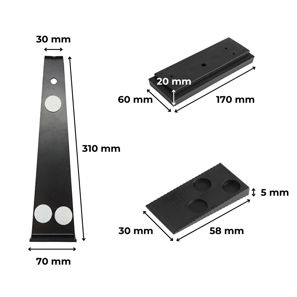 • 20 db ék (58×30×5 mm és 60×30×5 mm, bordázott felületű, csúszásgátlós)