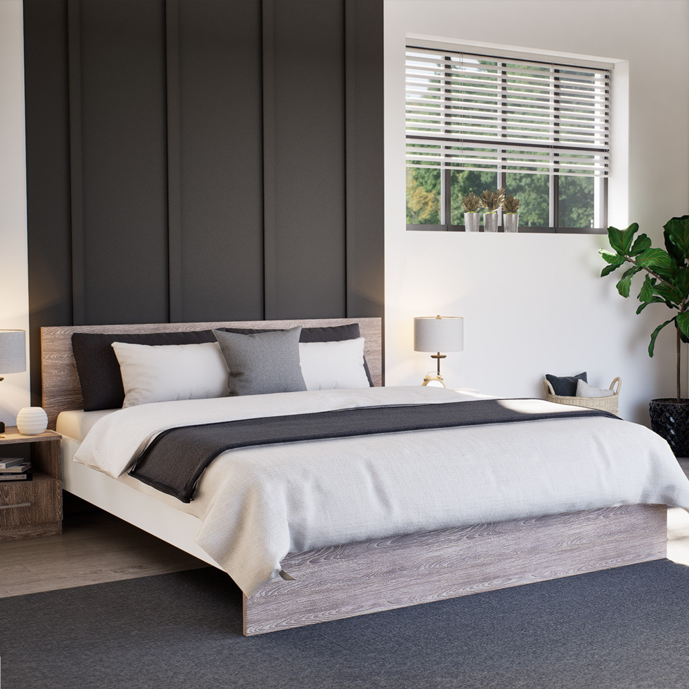 | Anyag | Kiváló minőségű bútorlap, fehér oldallappal, yorki tölgy fejvéggel és ágyvéggel. |