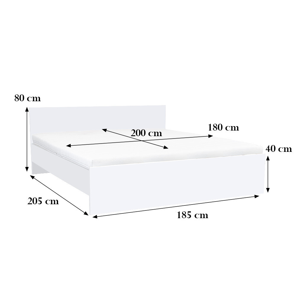 A miami ágy kiváló minőségű bútorlapból készült, fehér oldallappal, fehér fejvéggel és ágyvéggel. Az ágykeret méretei: 205 x 165 cm. Az ágytámla méretei: 80 x 185 cm. Az ágykeretbe illő matrac méretei: 200 x 180 cm
