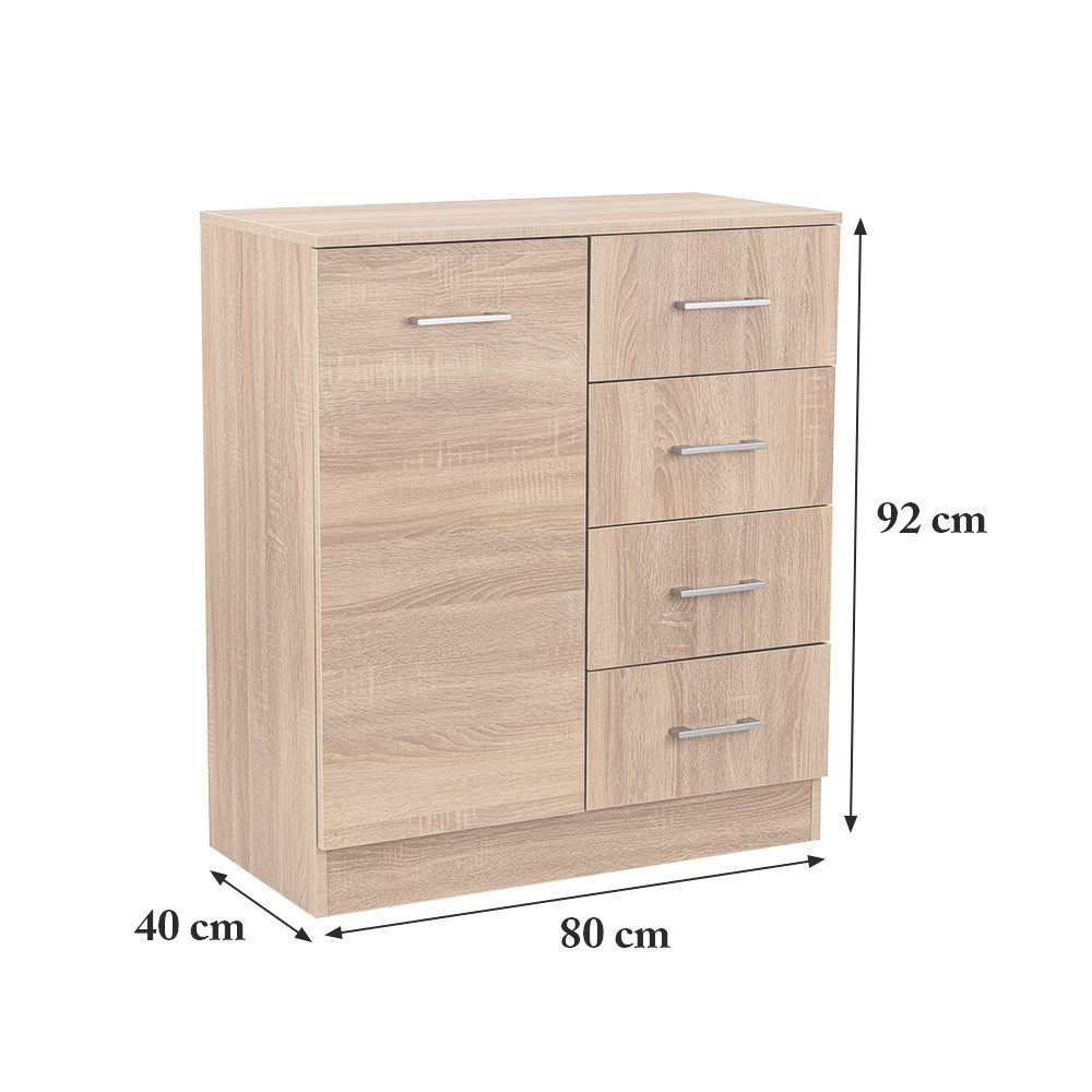 Miami komód 1 ajtós 4 fiókos 80x92 cm sonoma tölgy-sonoma tölgy