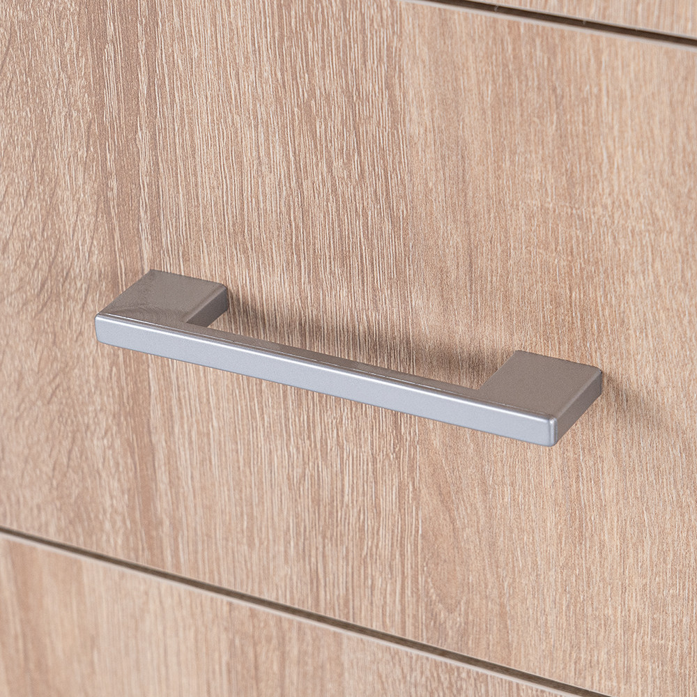 A Miami komód sonoma tölgy fronttal és a sonoma tölgy korpusszal tisztaságot és eleganciát kölcsönöz a térnek, miközben a minőségi bútorlap anyaga garantálja a tartósságot és az ellenálló képességet. Méretei - 40 cm mélység, 80 cm szélesség, 92 cm magasság - ideálisak bármely helyiségbe. A komód 4 görgős fiókkal lett kialakítva, amelyek tökéletesen alkalmasak ruhák, könyvek vagy akár irodai felszerelések tárolására. A modern dizájnt matt króm hatású műanyag fogantyúk egészítik ki, amelyek még letisztultabbá teszik a megjelenést.