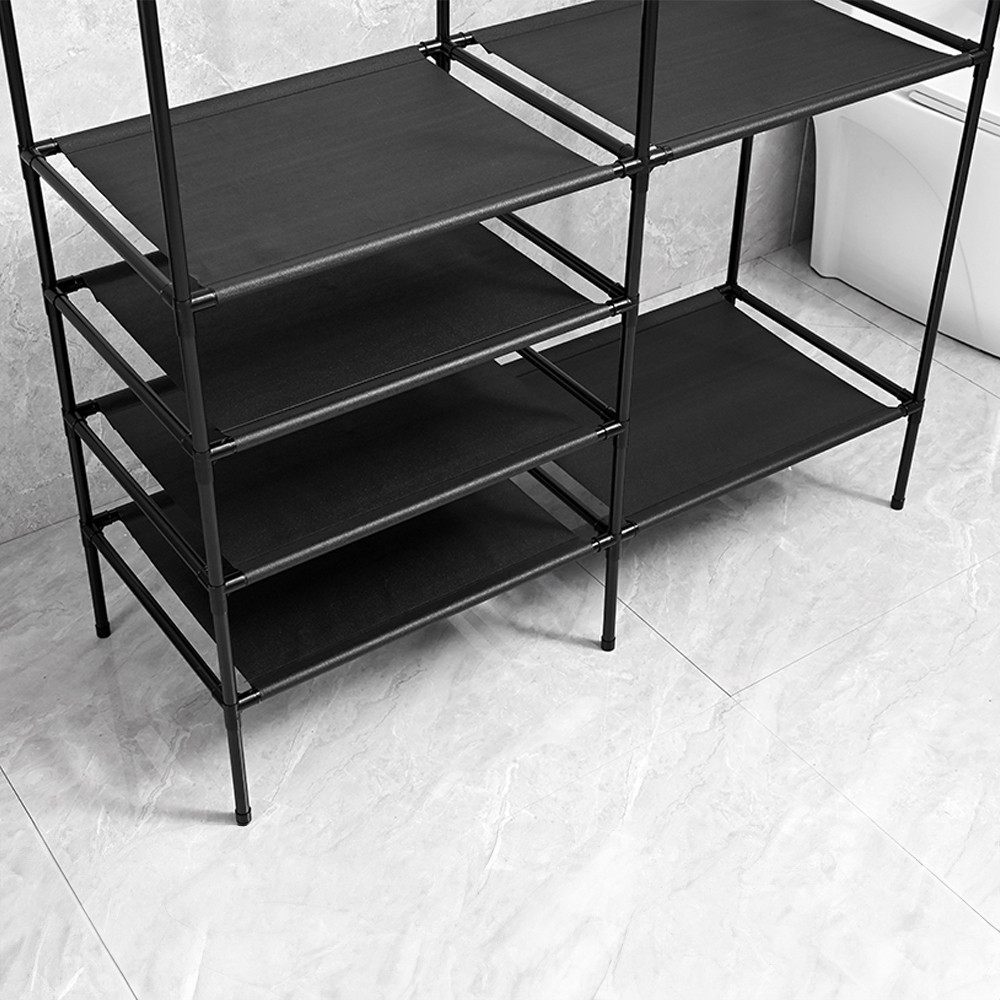 - Multifunkcionális kialakítás: Az állvány több polccal és egy akasztórúddal rendelkezik, amelyek lehetővé teszik különböző típusú ruhák, cipők és egyéb kiegészítők tárolását.