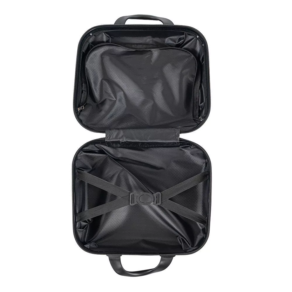 - Belső kialakítás: Cipzáras elválasztó, rugalmas rögzítőpánt mindhárom bőröndbeny