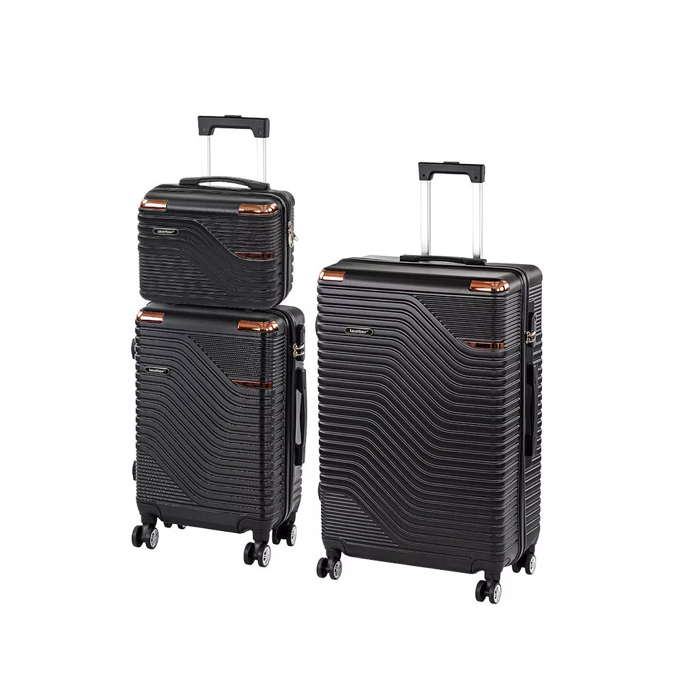 - Zár: Beépített számzár (kabin és nagy), cipzáras záródás (kézi bőrönd)