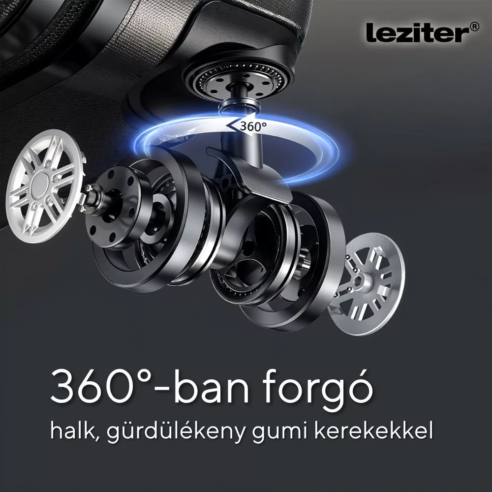 - Kerekek: Kabin- és nagy bőrönd: 4 db dupla kerék, 360°-ban forgatható (kabin bőrönd levehető kerekekkel)