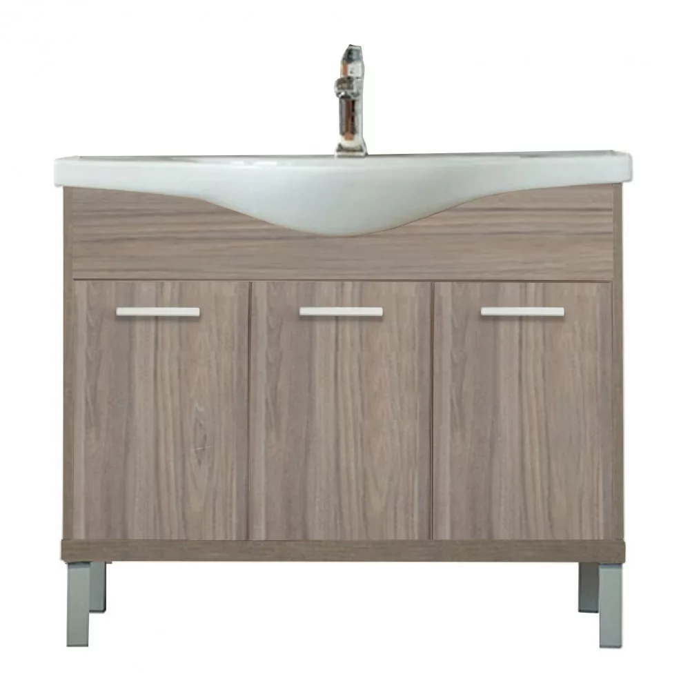 A fürdőszoba bútor kevés helyet foglal viszont tágas szekrénnyel rendelkezik ahol kényelmesen elférnek a fürdőszobai pipere eszközök. Kevés helyigénye miatt kisebb fürdőszobák berendezésére is alkalmas, például panel lakásokban. A termék magas minőségű bútorlapból készül és színben passzoló élzárókkal van ellátva. A fürdőszoba bútor mosdóval együtt kapható.