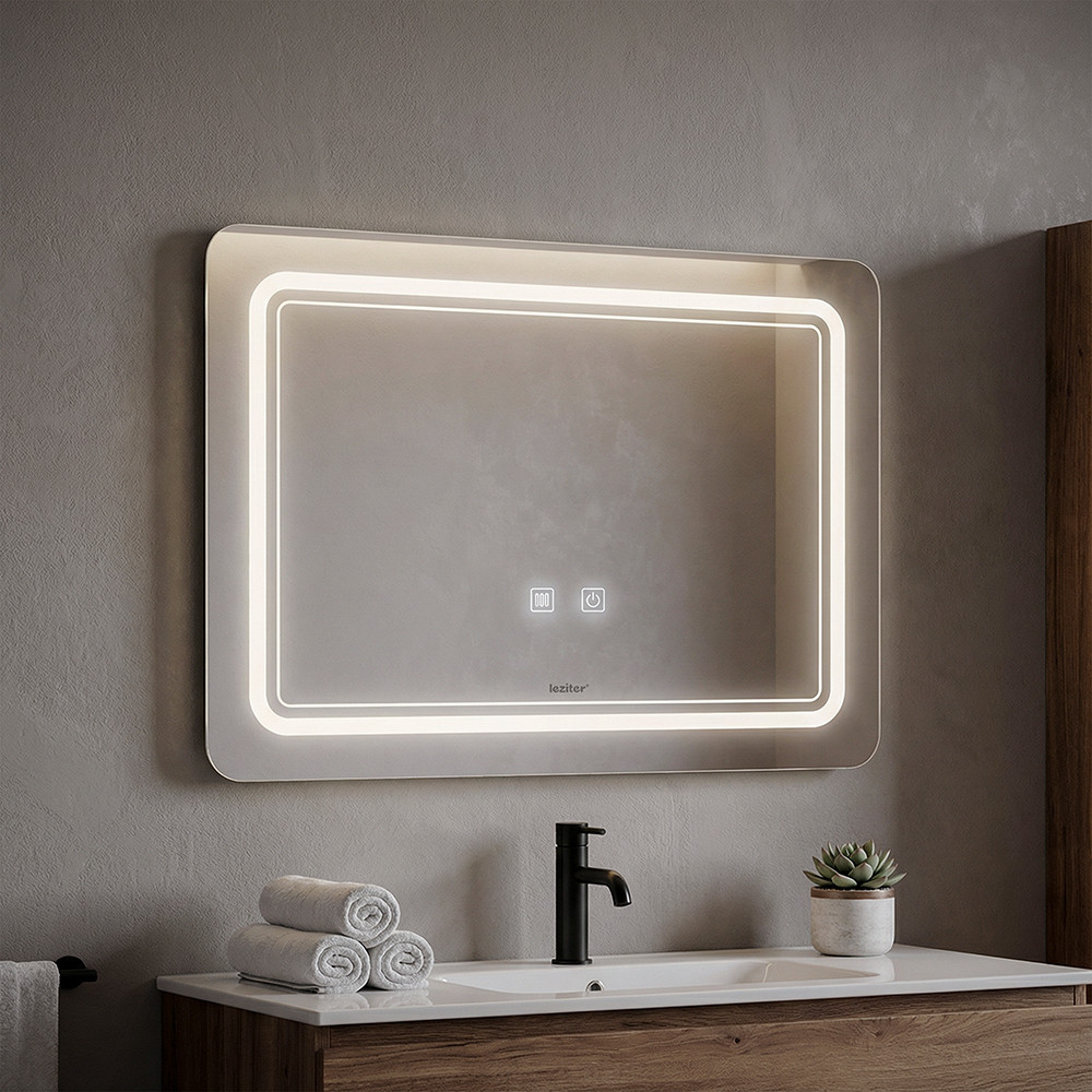 A tükör 4 mm vastag, ezzel biztosítva a tartósságot. Érintőgombos kapcsoló található a tükör alján, mellyel a világítást ki és be tudod kapcsolni. Bekapcsolva a 6000K hidegfehér fény árnyalata kellemes és ideális fényt biztosít. Nagy előnye, hogy nagyon takarékos az áram használat szempontjából, a magas minőségű világítási lehetőség mellett. A LED világítás modernebbé varázsolja fürdőszobádat. A tükör emellett gombnyomásra aktiválható páramentesítő funkcióval is rendelkezik, amely megakadályozza a pára lecsapódását, így a tükör zuhanyzás után is azonnal használható. Elegáns megjelenésének köszönhetően bármilyen stílusú berendezéshez nagyszerűen illeszkedik.