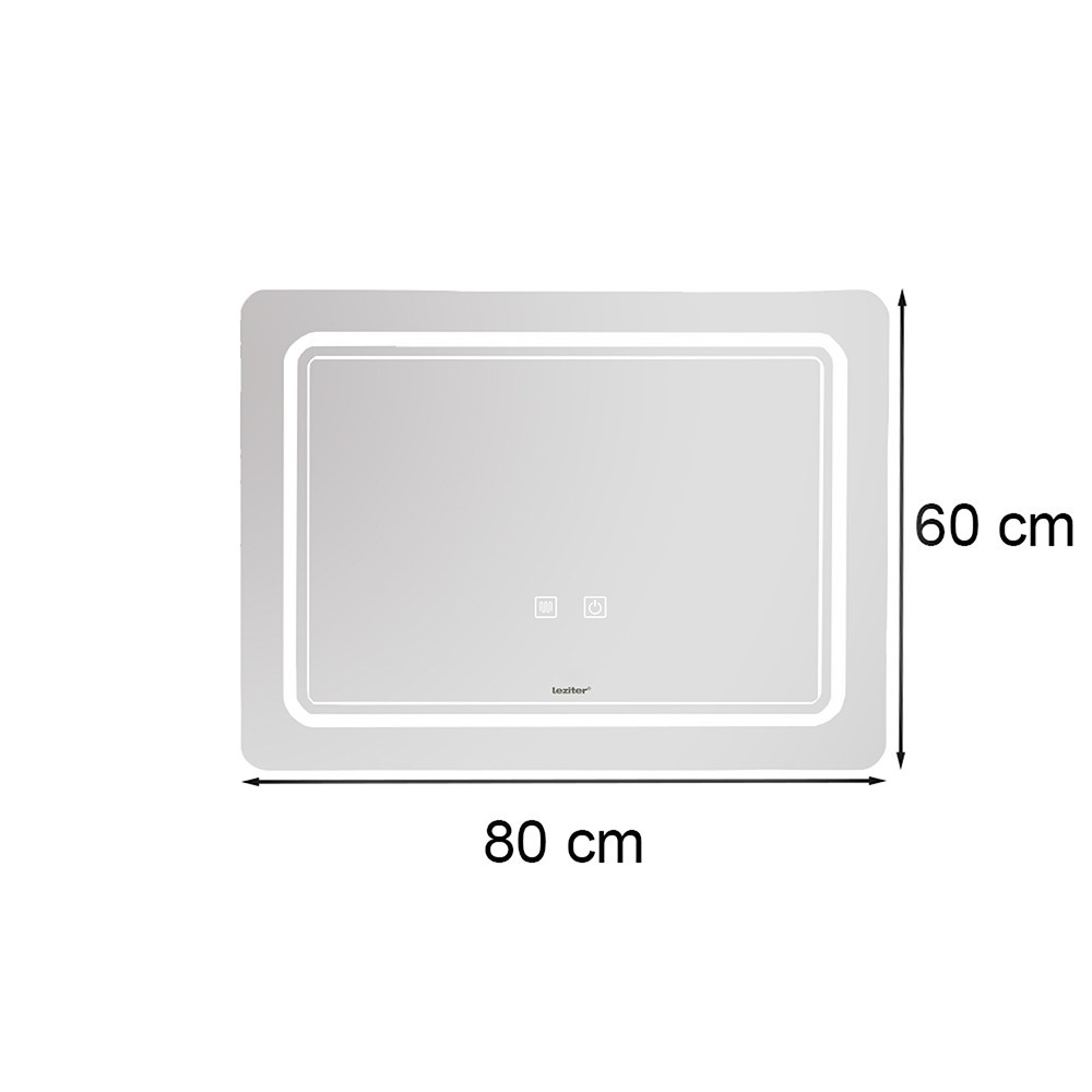 Vid tükör led világítással és gombnyomásra aktiválható páramentesítő funkcióval 80x60 cm