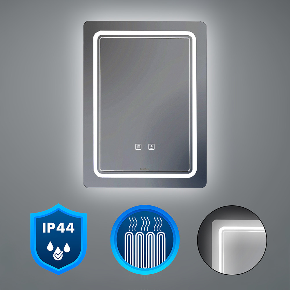 A tükör 4 mm vastag, ezzel biztosítva a tartósságot. Érintőgombos kapcsoló található a tükör alján, mellyel a világítást ki és be tudod kapcsolni. Bekapcsolva a 6000K hidegfehér fény árnyalata kellemes és ideális fényt biztosít. Nagy előnye, hogy nagyon takarékos az áram használat szempontjából, a magas minőségű világítási lehetőség mellett. A LED világítás modernebbé varázsolja fürdőszobádat. A tükör emellett gombnyomásra aktiválható páramentesítő funkcióval is rendelkezik, amely megakadályozza a pára lecsapódását, így a tükör zuhanyzás után is azonnal használható. Elegáns megjelenésének köszönhetően bármilyen stílusú berendezéshez nagyszerűen illeszkedik. Méretéből adódóan kisebb helyiségben tökéletesen mutat.